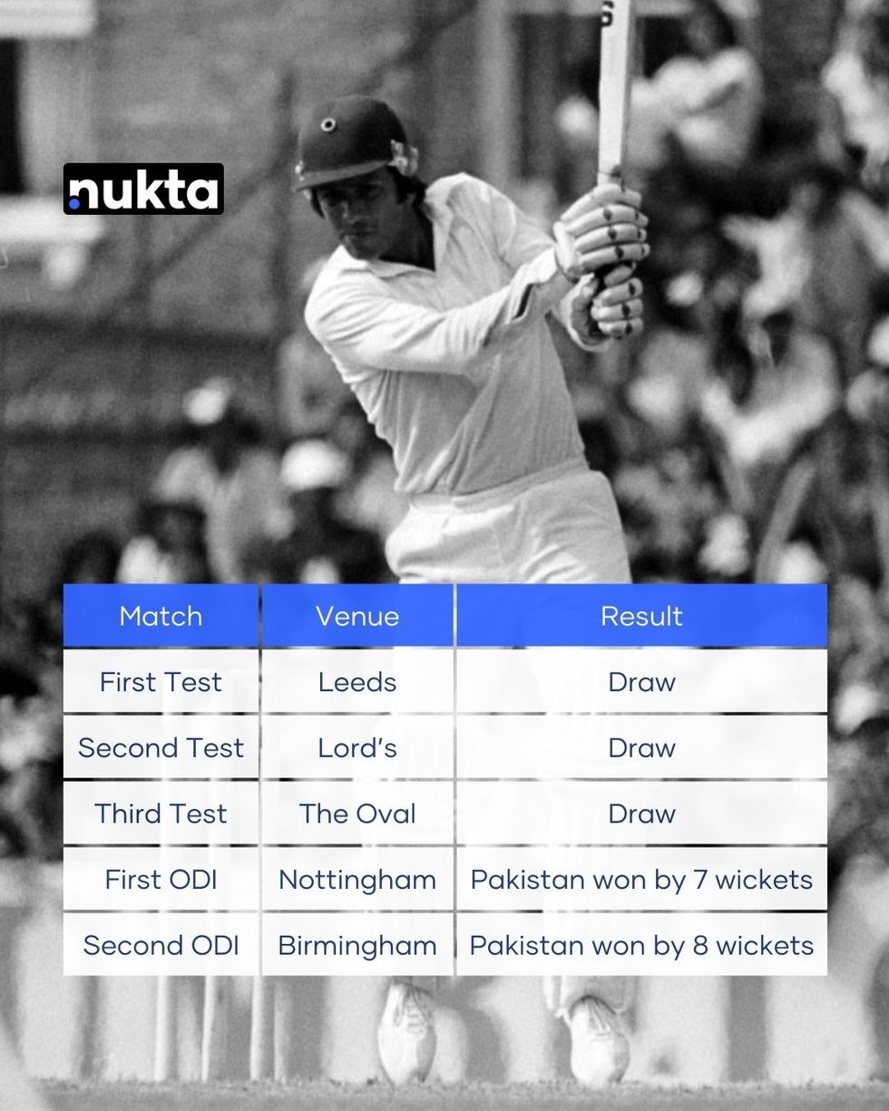 In September 1974, Pakistan went to England, remained unbeaten throughout the challenging tour and in the process recorded a memorable 2-0 triumph in the ODI series