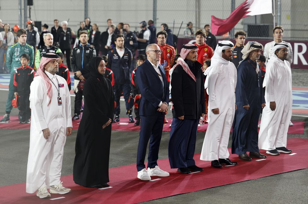 Red Bull's Max Verstappen, McLaren's Lando Norris, Ferrari's Charles Leclerc, McLaren's Oscar Piastri, Mercedes' George Russell and Alpine's Pierre Gasly in action during the Qatar GP.
