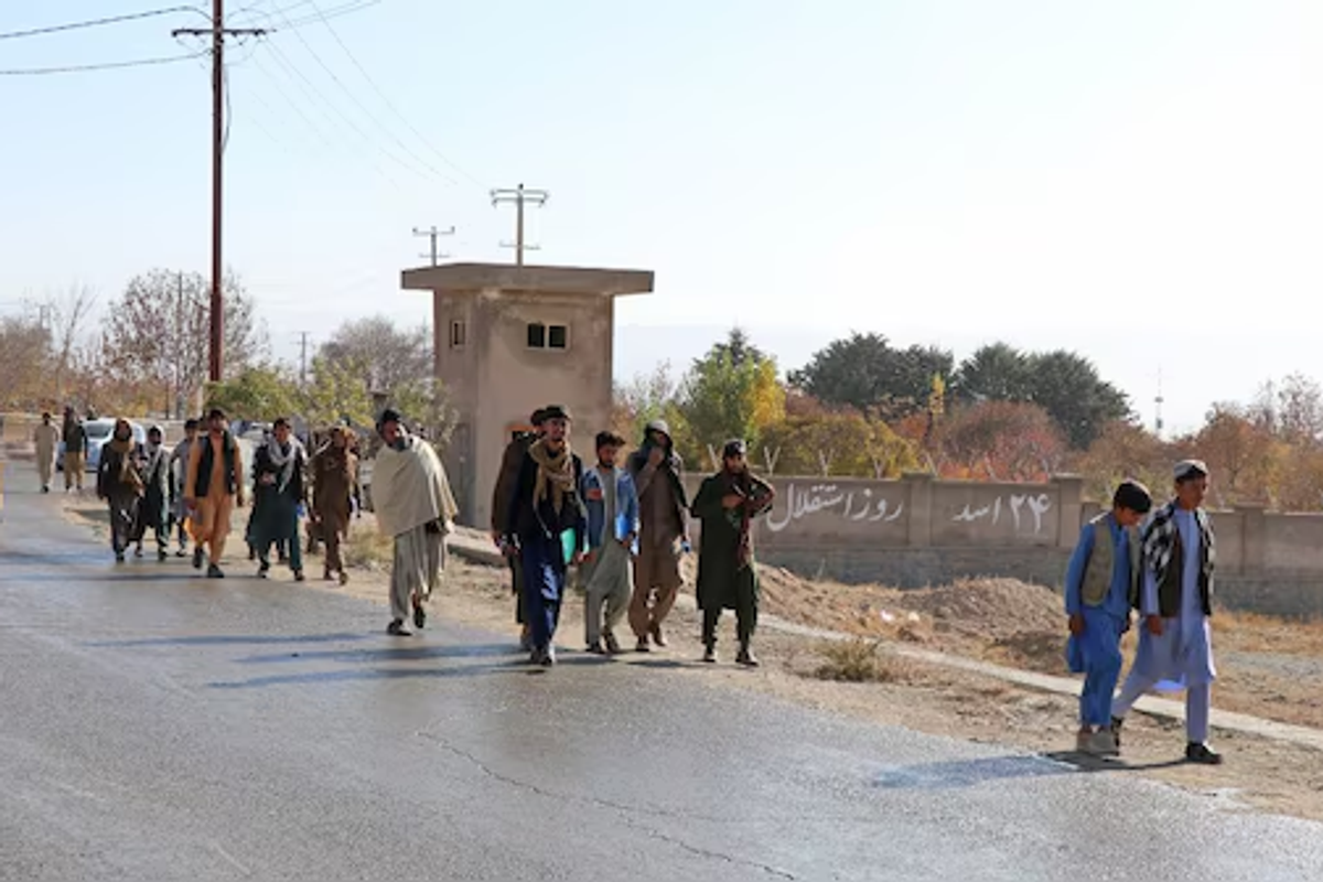 Afghan men leave after watching the public execution of a man, by the Taliban at a football stadium in Gardez, in Paktia province on November 13, 2024.