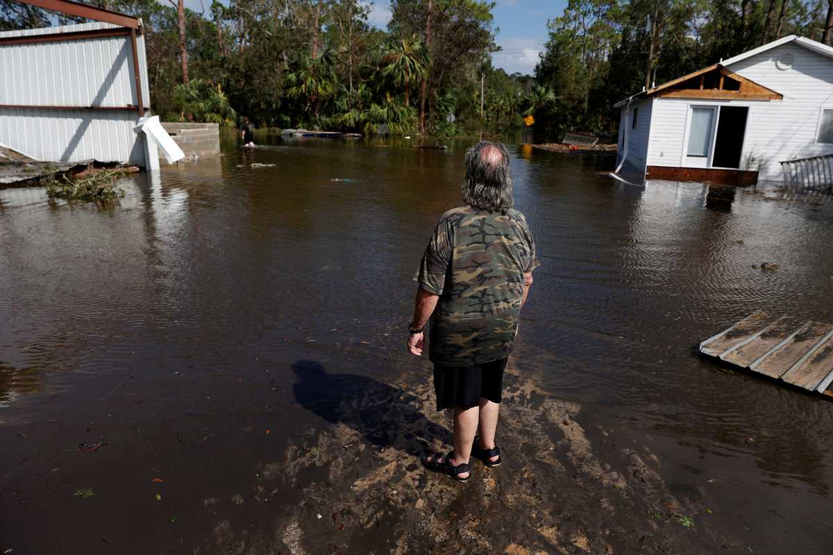 A person looks at flooded area following Hurricane Helene in Steinhatchee, Florida, U.S., September 27, 2024.