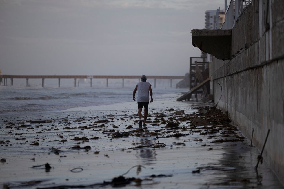 A man walks on the beach after Hurricane Milton made landfall in South Daytona, Florida, U.S., October 11, 2024.
