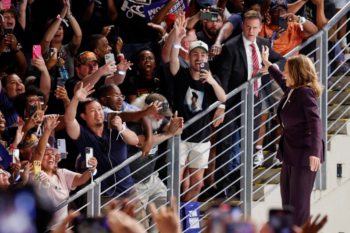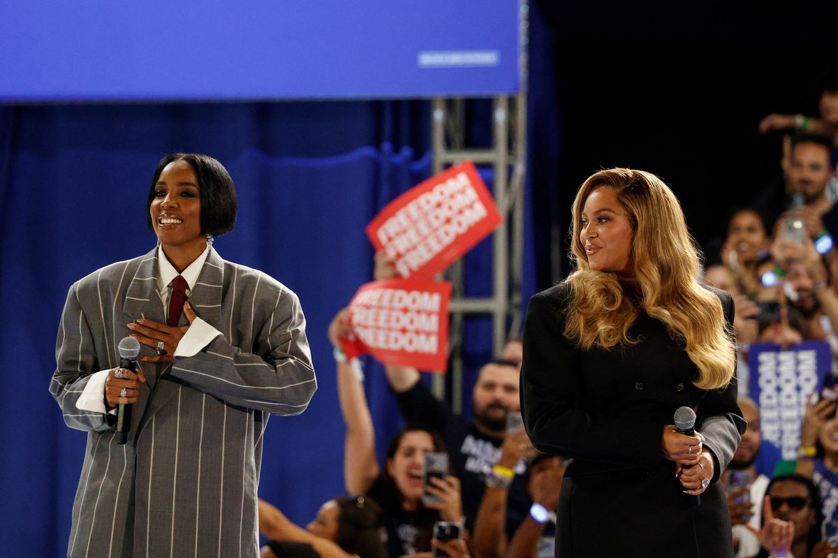She then introduced Harris, who walked onstage to what has become her campaign anthem: the song "Freedom" from Beyonce's 2016 album "Lemonade." Beyonce gave the vice president a long embrace before exiting.