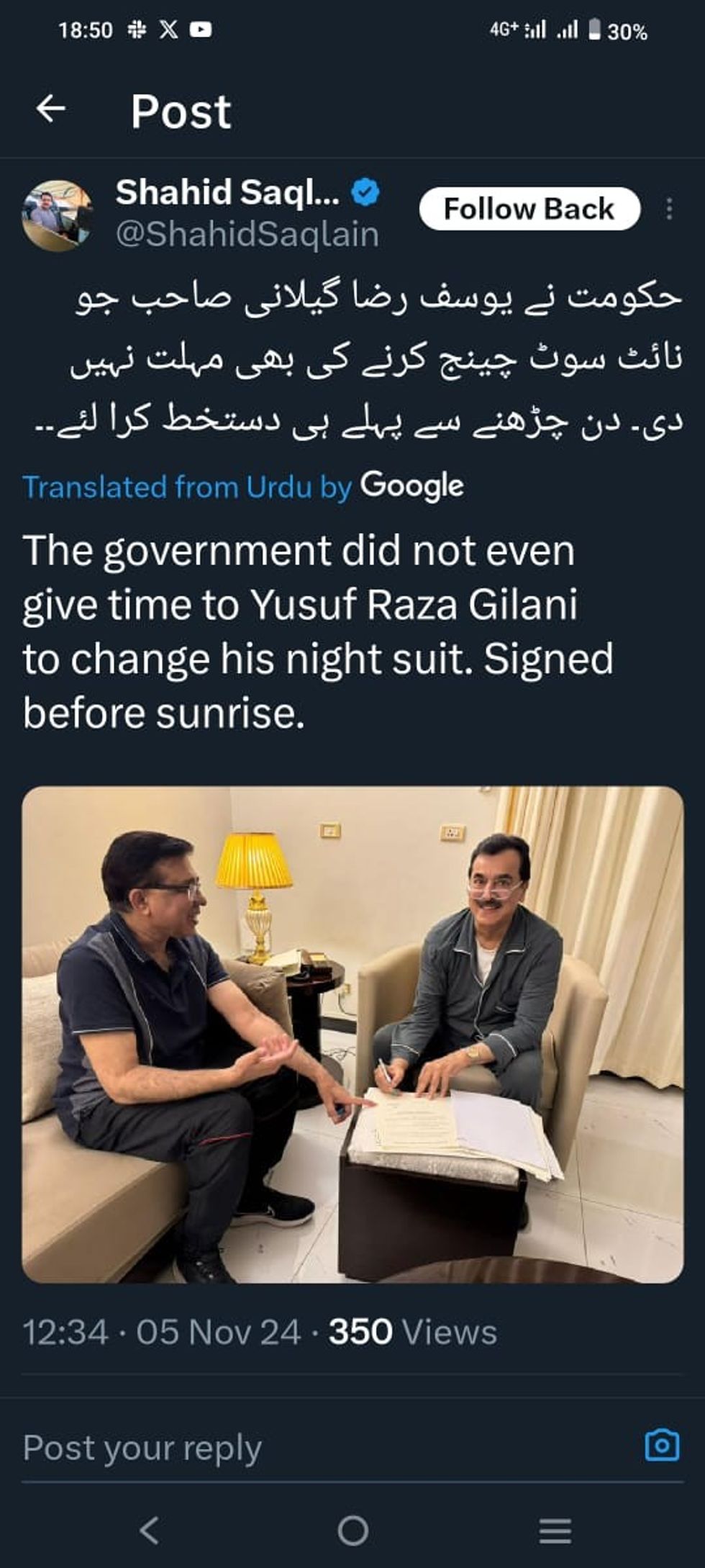 Others felt sympathy for the acting president, with one user remarking, "The government didn't even give Yousuf Raza Gillani time to change out of his night suit. He signed [it] before sunrise."