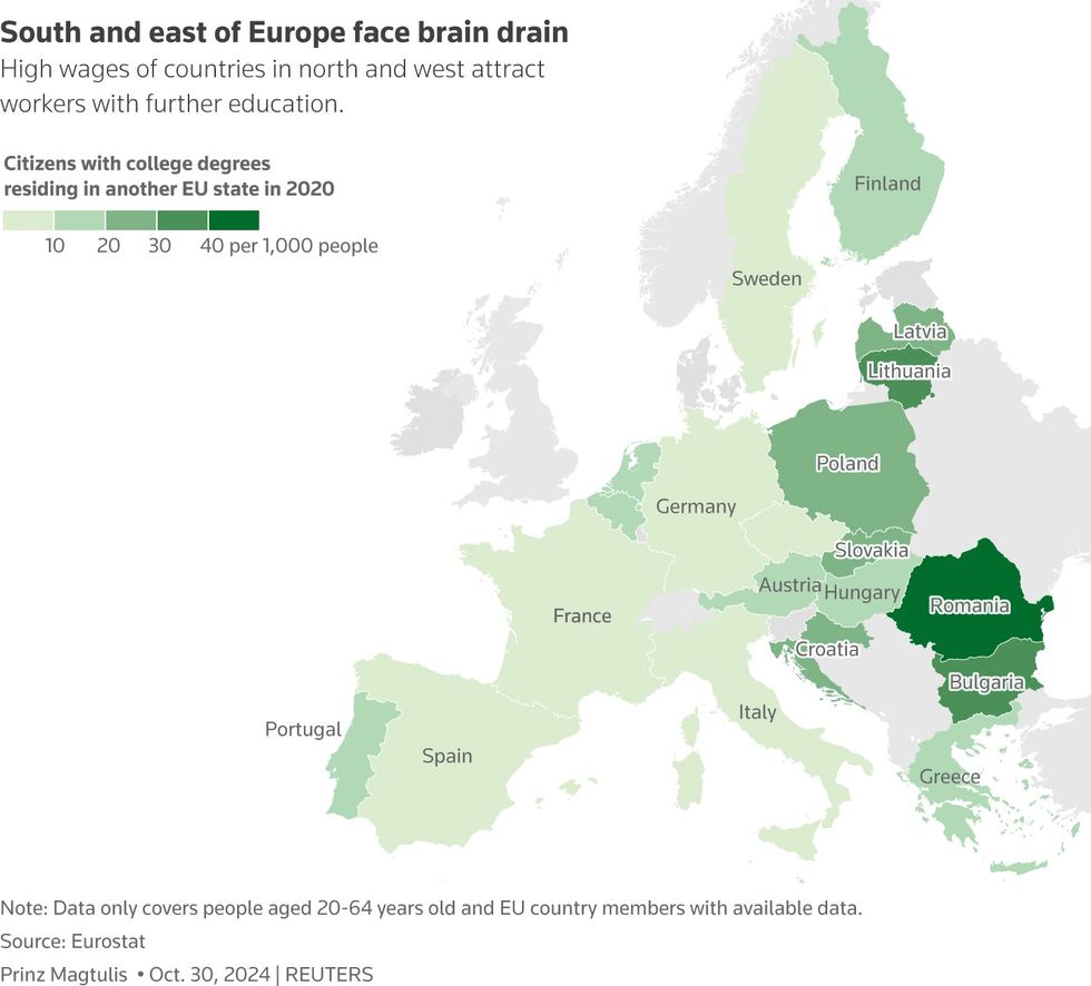By exacerbating regional labor shortages and depriving poorer countries of tax revenues, it is yet another hurdle for the EU as it tries to improve its ebbing economic growth while addressing population decline and lagging labor productivity.