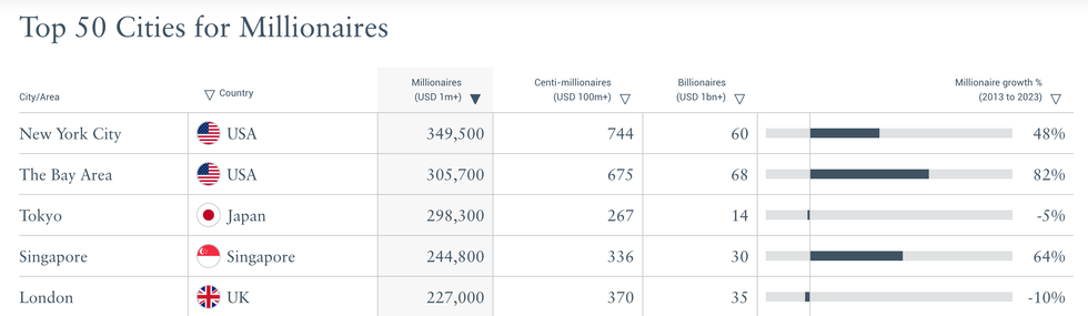 Below, see the top 5 wealthiest cities in the world based on December 2023 figures.