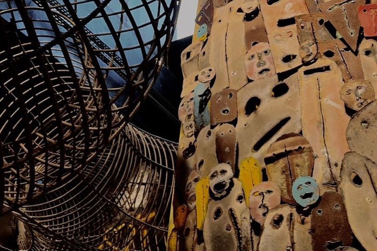 Behind the long, narrow door into Lamma, visitors are greeted with a kaleidoscope of colors and shapes. The plant-covered walls contrast with a web of suspended metal scraps, alcoves, and slide tunnels children swoop through.