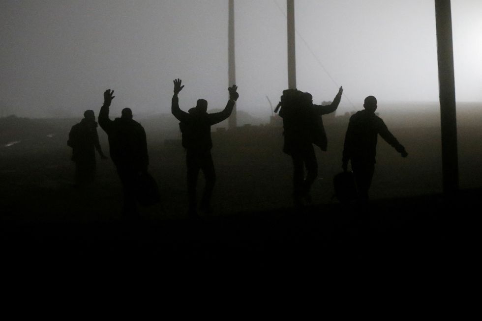 Asylum seekers cross into Canada from the U.S. border near a checkpoint on Roxham Road near Hemmingford, Quebec, Canada April 24, 2022.