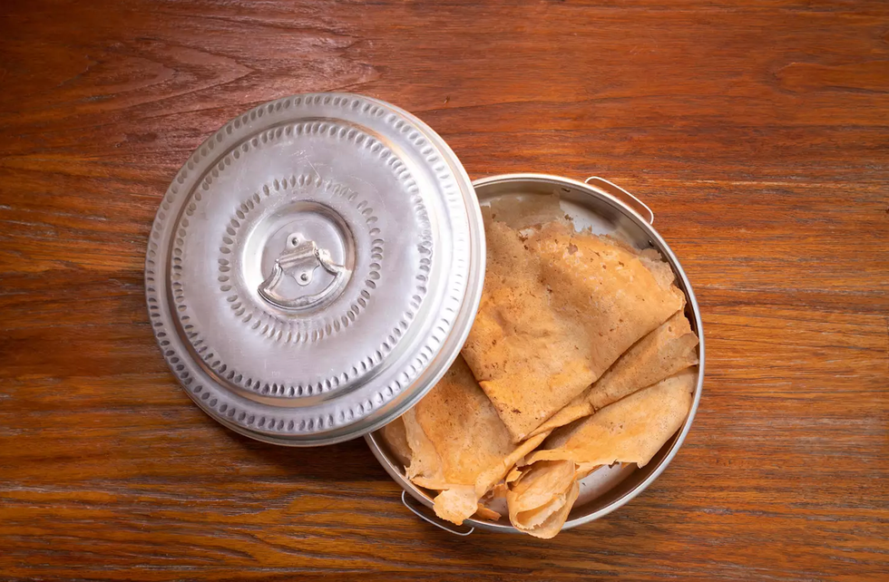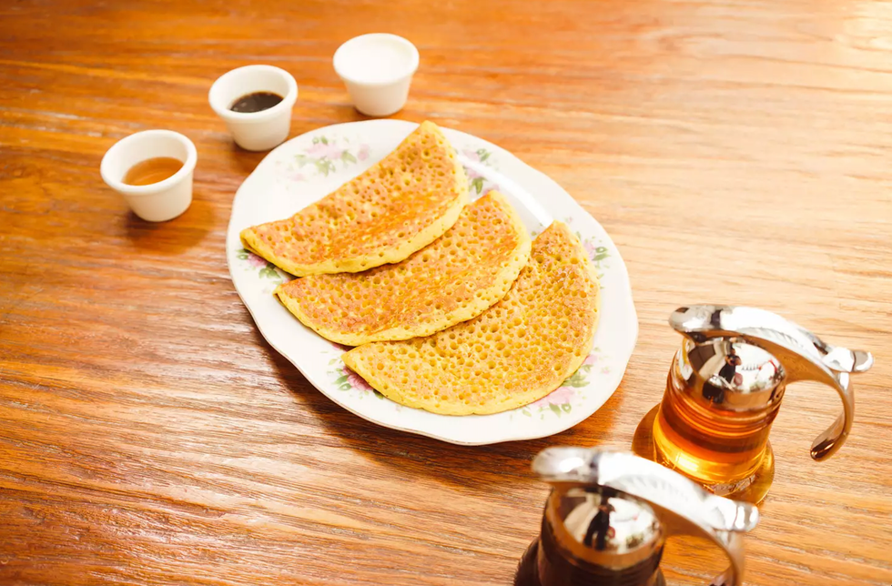Often enjoyed for breakfast or dinner, regag is a traditional crispy flatbread, sometimes served with cheese or honey. Similar to a crepe, the dough is cooked on a griddle and is a Ramadan staple.
