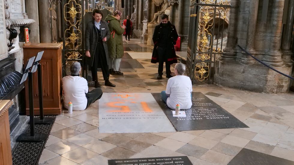 Climate activists paint over Darwin's grave at London's Westminster Abbey
