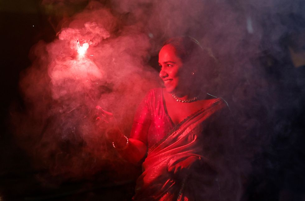 Many residents celebrated at home, holding a family meal and lighting small candles in praise of the Hindu goddess Lakshmi and symbolizing the victory of light over darkness.