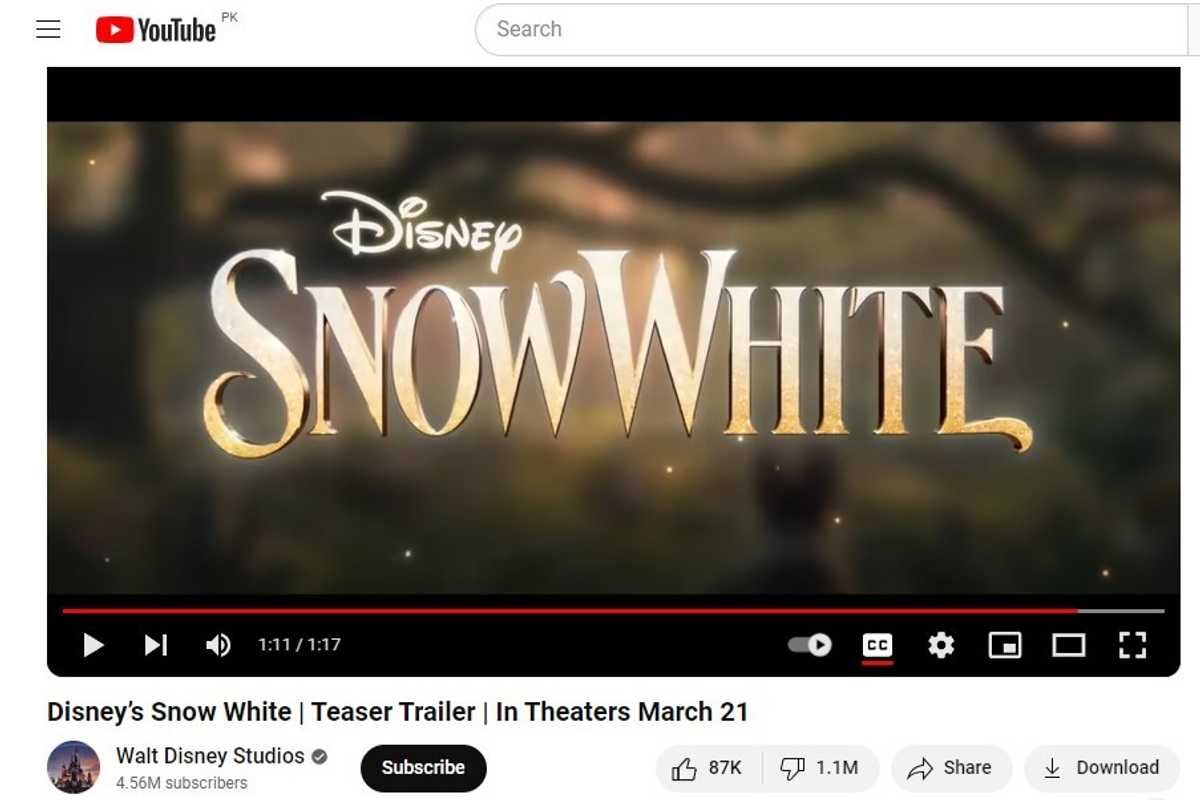 The teaser trailer of Snow White's remake racks up over 1 million dislikes, igniting massive backlash