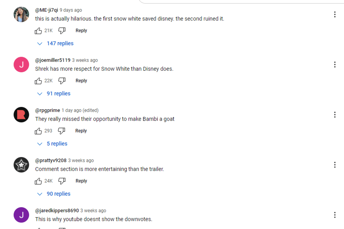 Disney has announced the return of Snow White’s magical journey, hitting theaters on March 21, 2025. But the studio is already facing imminent backlash from fans, with the teaser trailer on YouTube receiving over 1.1 million dislikes, compared to just 87,000 likes.