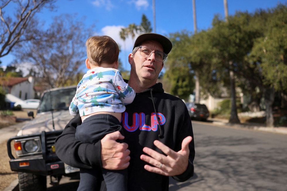 John Adolph, a 48-year-old video producer, and his wife, two small children and two dogs have been staying with friends since they fled their Altadena home a week ago. Their ranch-style home of six years near the Angeles National Forest was totally destroyed in the Eaton Fire.