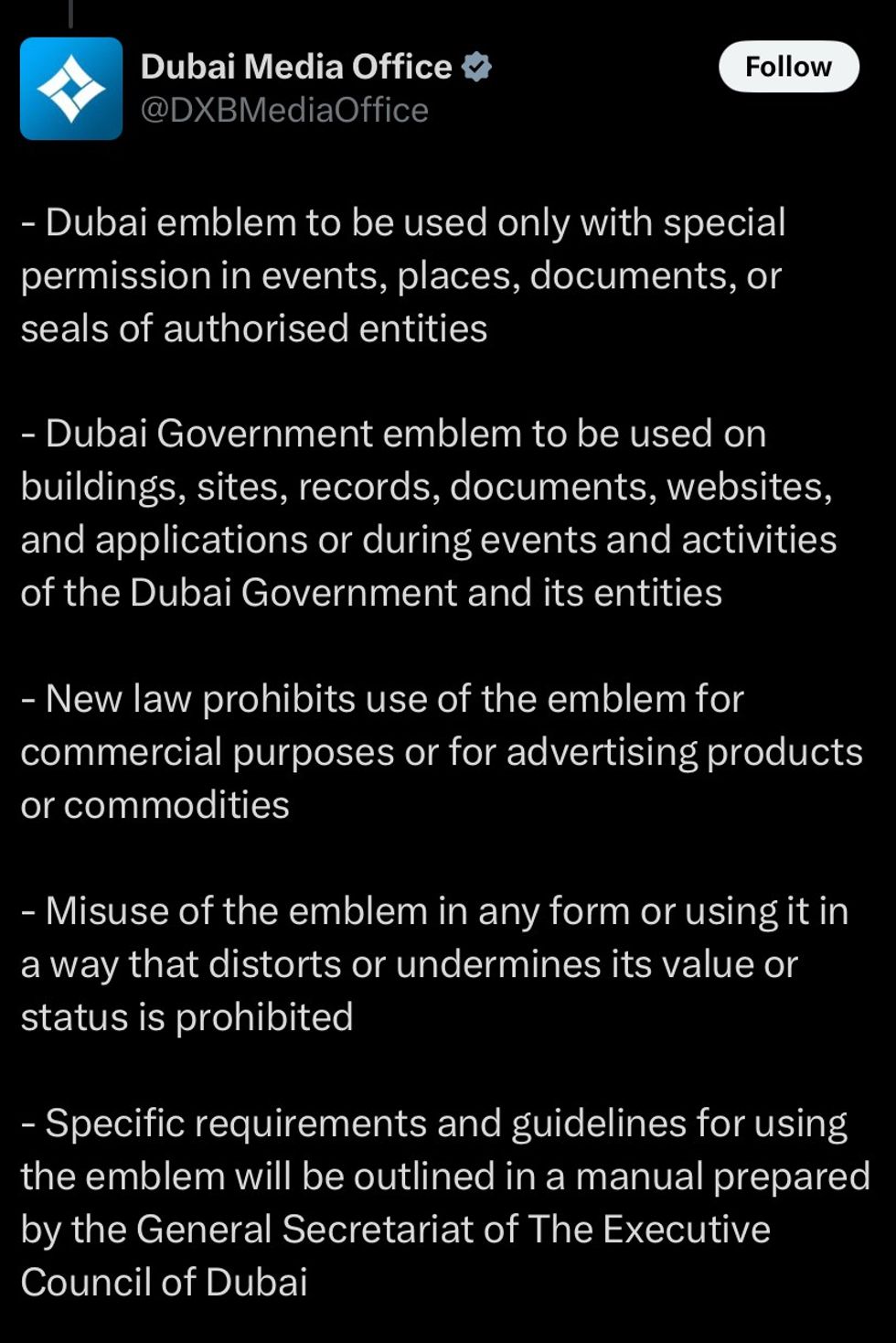 Additionally, using logos in activities or events that contradict the values and principles of the Emirate of Dubai or conflict with public order and morals is explicitly banned.