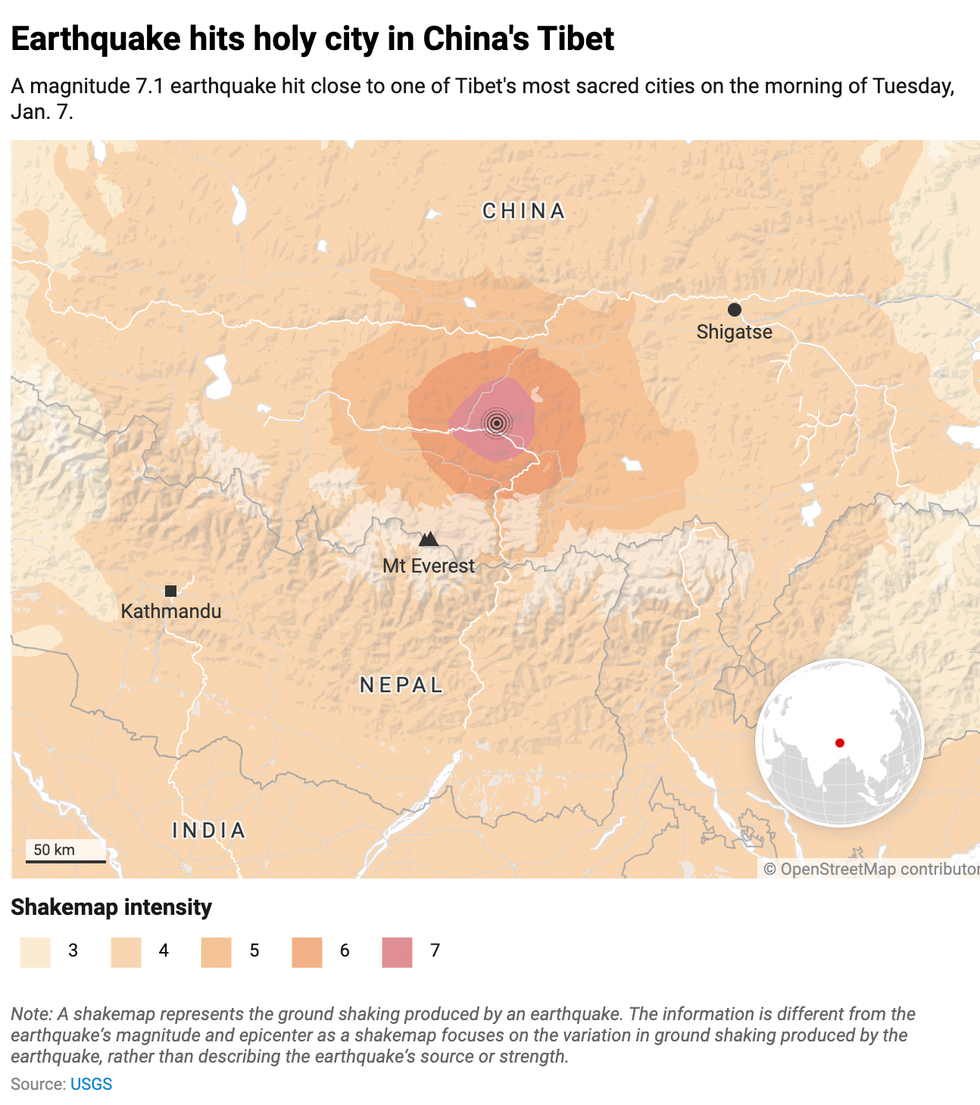 The impact of the temblor was felt across the Shigatse region of Tibet, home to 800,000 people. The region is administered by Shigatse city, the traditional seat of the Panchen Lama, one of the most important figures in Tibetan Buddhism.