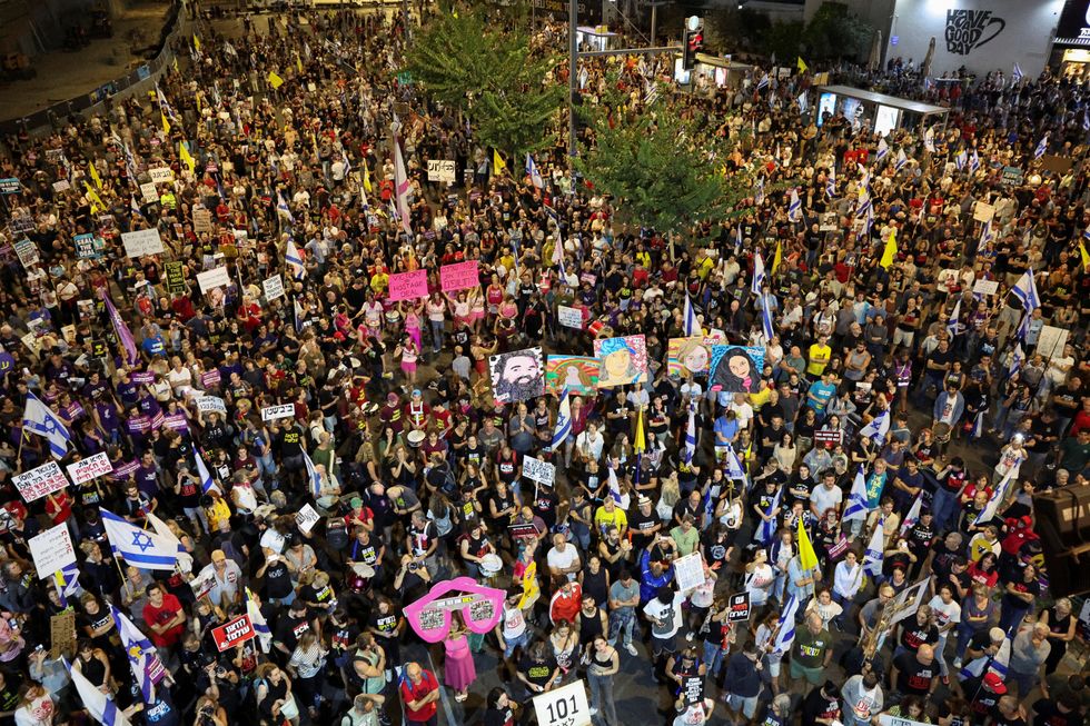 A demonstrator holds a sign, as people protest against the government, to demand a ceasefire deal and the immediate release of hostages kidnapped during the deadly October 7, 2023 attack by Hamas, in Tel Aviv, Israel, October 19, 2024.