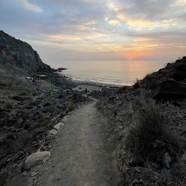 Many people have heard of the Al Rabi Trail in Khor Fakkan, but did you know there's another stunning hidden trail in Khor Fakkan? This medium-altitude mountain walk offers panoramic beach views and is a perfect spot for sunrise camping.