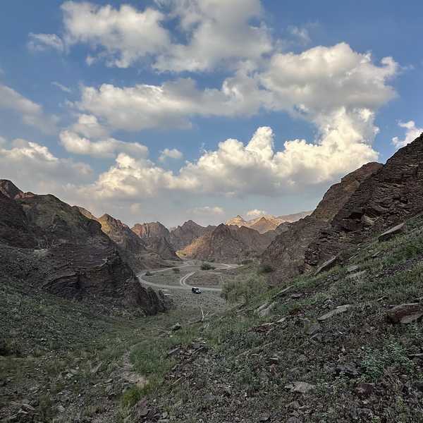 Between the rugged landscapes of Ras Al Khaimah and the scenic landscapes of Fujairah lies Wadi Kub, a hidden gem for hikers seeking both tranquility and adventure. Wadi Kub stands out with its greenery during winter and impressive mountain formations. After reaching the peak, the trail winds down into the wadi's opposite side, where loose rocks demand caution.