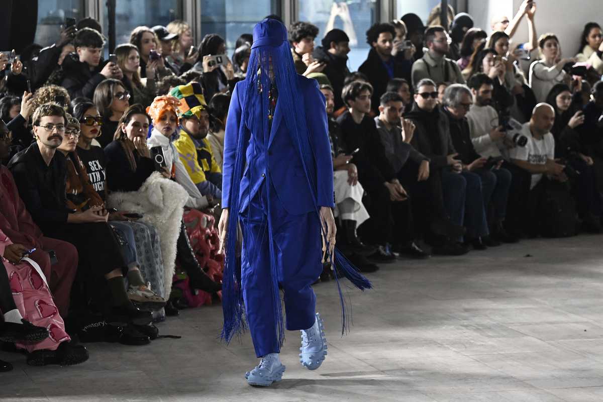 Belgian fashion designer Walter Van Beirendonck waves to attendees after his Menswear Ready-to-wear Fall-Winter 2025/2026 collection as part of the Paris Fashion Week in Paris on January 22, 2025.