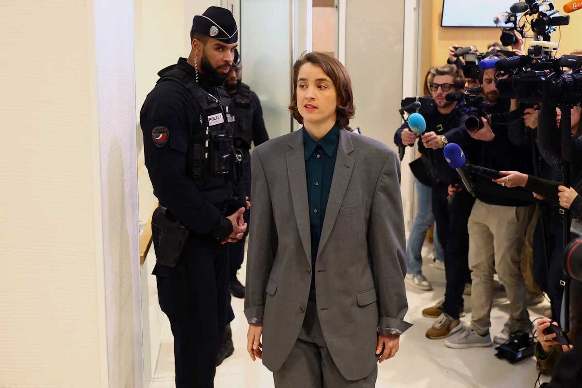 Adele Haenel leaves with her lawyer, Yann Le Bras, after the verdict in the trial of French film director Christophe Ruggia for sexually abusing her on set while she was an adolescent at the criminal court in Paris, France, February 3, 2025.