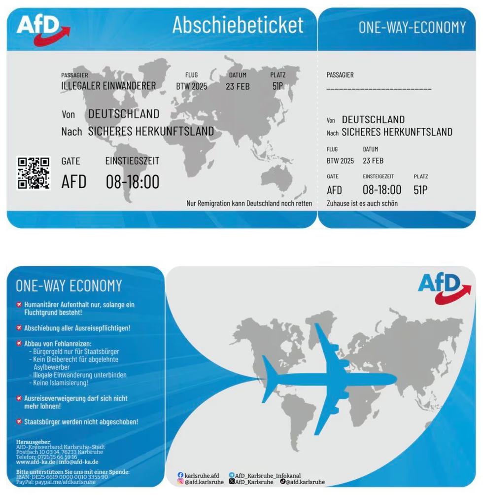 Several migrants have posted on social media about receiving the tickets over the past few days, although the AfD has denied specifically sending them to foreigners.