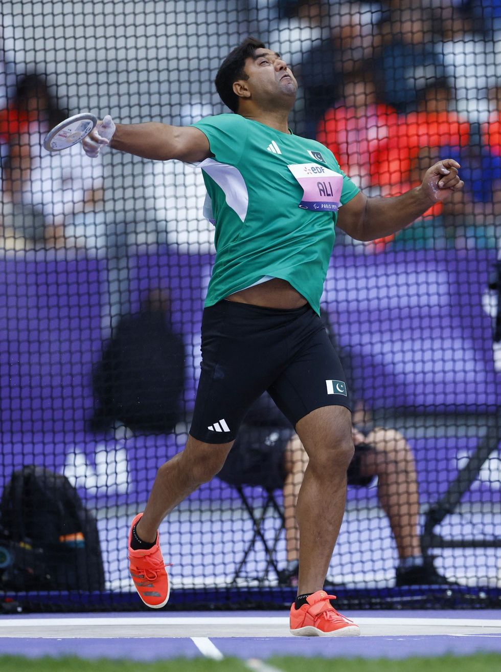 The 39-year-old, who was the sole participant from Pakistan in the ongoing Games, covered a distance of 52.54 meters at the jam-packed Stade de France Track.