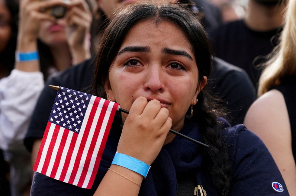 An emotional vice president Harris told cheering supporters in Washington "do not despair" and she urged them to "keep fighting."