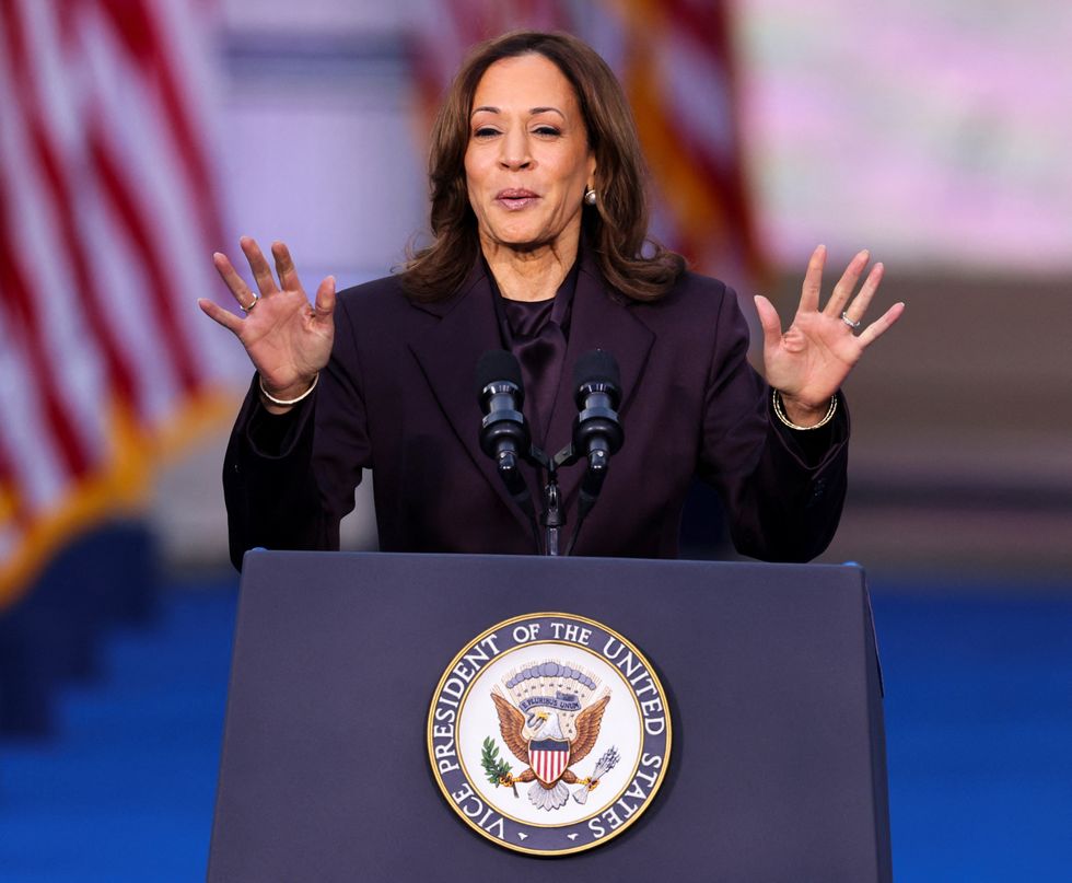 Democratic presidential nominee U.S. Vice President Kamala Harris delivers remarks, conceding 2024 U.S. presidential election to President-elect Donald Trump, at Howard University in Washington, U.S., November 6, 2024.