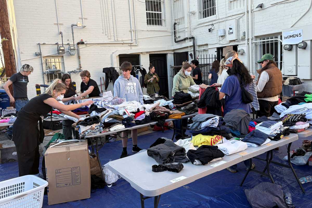Ellen Bennett was choosing items for her 72-year-old mother, who lost her home in the Eaton fire on the east side of Los Angeles. Bennett said she selected "the basics," including socks, sweaters, pants, a jacket, and a pair of running shoes.