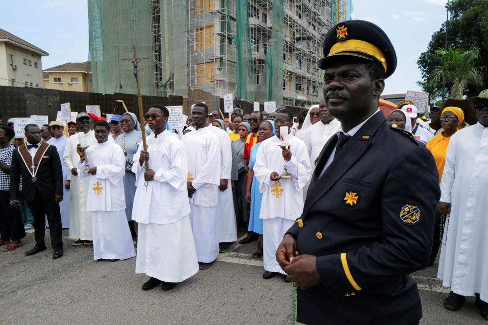 Members of the Catholic Archdiocese of Accra march in the streets to demonstrate against illegal mining locally known as 'galamsey', in Accra, Ghana.