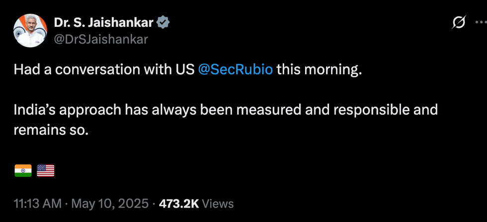 Following the call, Indian Foreign Minister S. Jaishankar said on X he told Secretary Rubio that India’s approach has “always been measured and responsible—and remains so.”