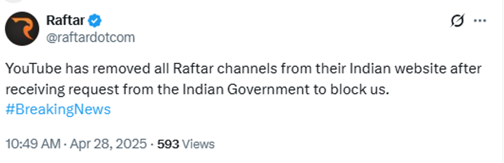 Quoting government sources, ANI reported that on the recommendations of the Ministry of Home Affairs, the Indian government banned several Pakistani YouTube channels for "disseminating provocative and communally sensitive content."