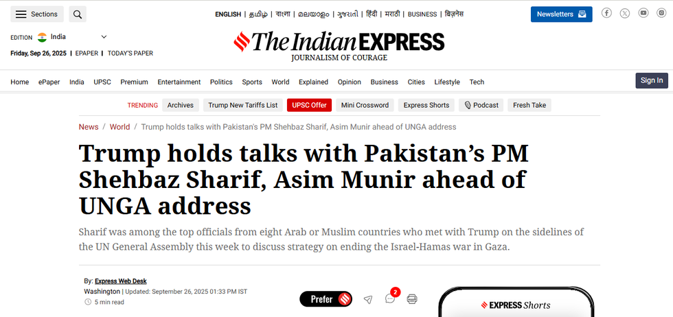 The headline was inaccurate. Trump had already addressed the UN General Assembly before the meeting. The error underscored the rushed, uneasy nature of Indian coverage.