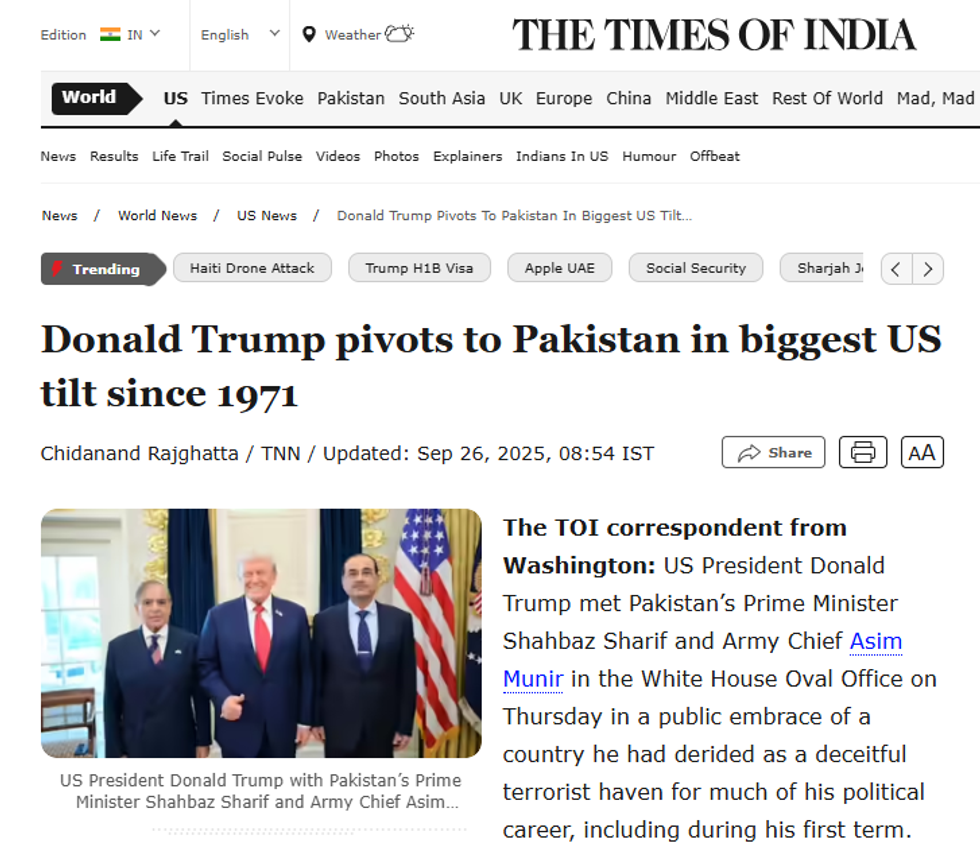 Times of India placed the meeting in historical perspective, recalling Nixon’s Cold War outreach through Pakistan. It acknowledged U.S. ceasefire diplomacy and cast the White House reception as a turning point in regional politics.