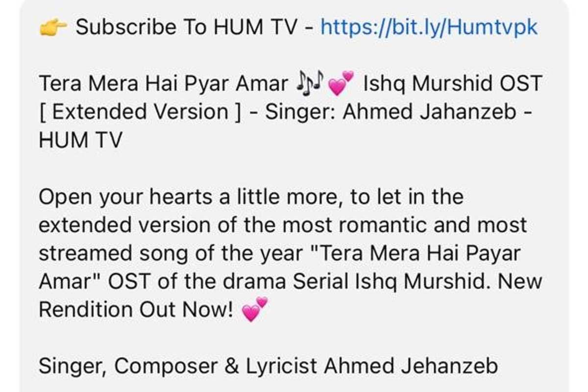 However, Jehanzeb's manager, Omar Ijaz Khan, firmly denied Saud's claims. "The song is written, composed, and sung by Ahmed Jehanzeb alone," Khan told Nukta. He pointed out that the official soundtrack description on HUM TV's YouTube channel attributes the work solely to Jehanzeb.