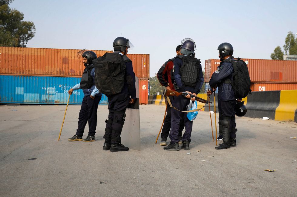 Police officers walk to guard a road to prevent an anti-government rally by supporters of the former Pakistani Prime Minister Imran Khan's party Pakistan Tehreek-e-Insaf (PTI) in Islamabad, Pakistan, November 24, 2024.