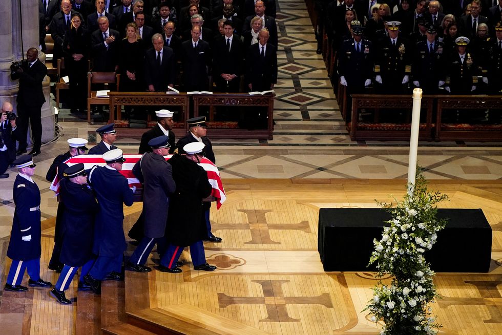 His flag-draped coffin, lying in state at the U.S. Capitol, was carried by an honor guard to Washington National Cathedral.