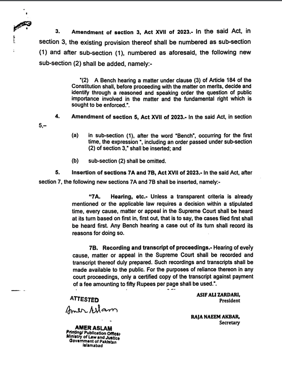 The Supreme Court (Practice and Procedure) Act 2023 was passed by parliament in April 2023.