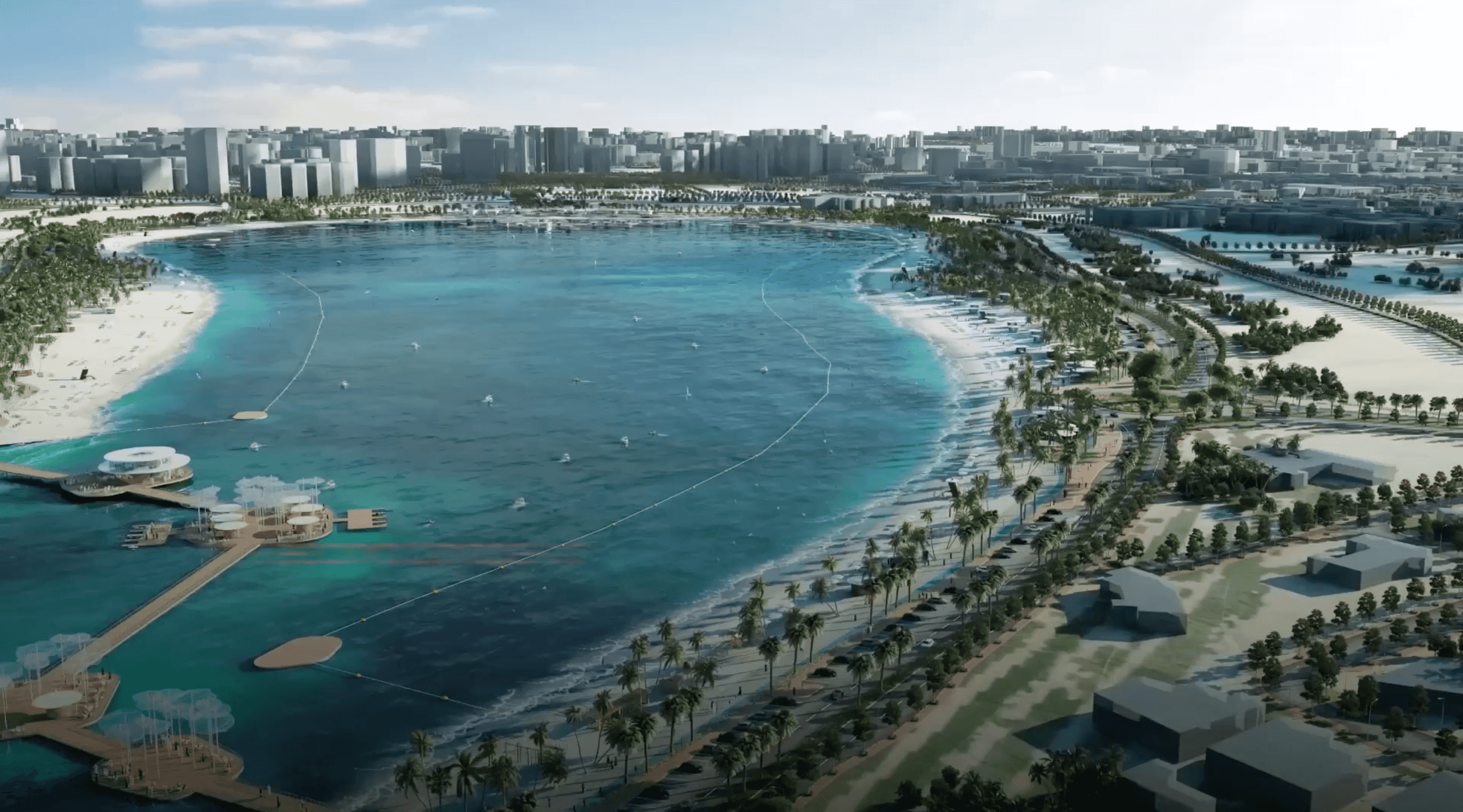 First Phase Nearing CompletionThe first phase of the project, which began in mid-2024, is 45% complete. This phase covers 275,000 square meters and includes a floating pedestrian bridge, dedicated walking and cycling tracks, and a night swimming beach accessible to people of determination.