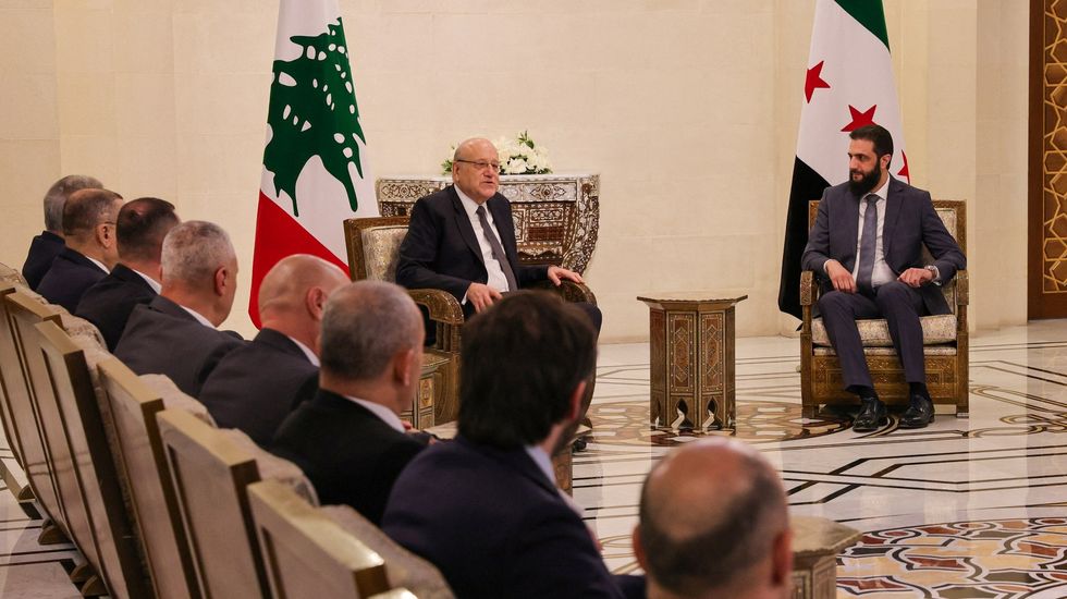 Lebanon's caretaker Prime Minister Najib Mikati meet with Syria's de facto leader Ahmed al-Sharaa in Damascus, Syria, January 11, 2025.