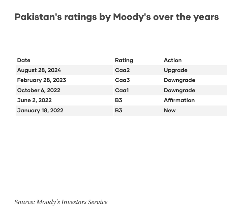Moody's — one of the world's biggest credit rating agencies — said the upgrade reflected "Pakistan's improving macroeconomic conditions and moderately better government liquidity and external positions from very weak levels previously".
