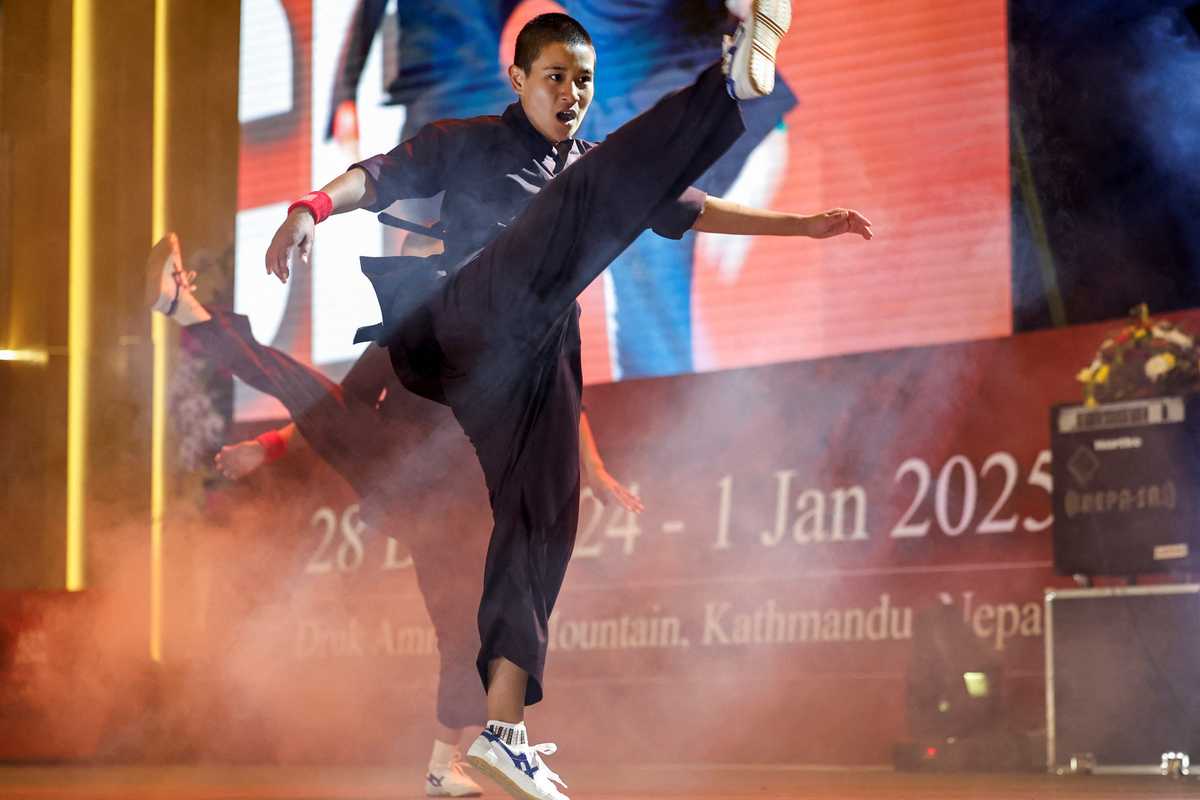 Kung Fu nuns, who practise the martial art for self-defence and meditation, demonstrate their skills during the reopening of the nunnery for the first time since the COVID-19 closure at Druk Amitabha Mountain Nunnery in Kathmandu, Nepal December 30, 2024.
