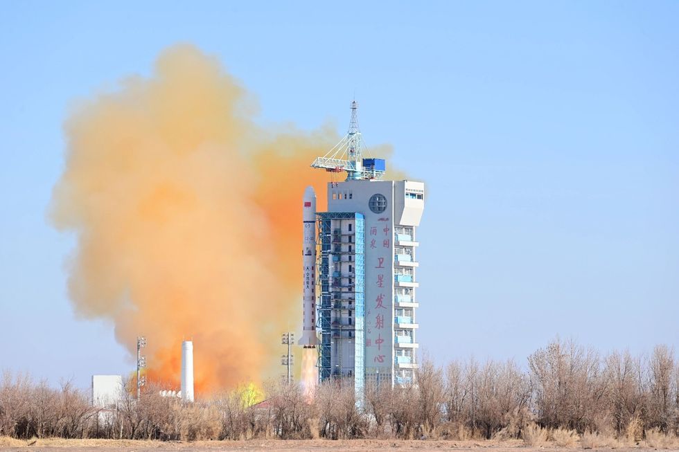 The Long March-2D rocket sits on the launch pad moments before liftoff at Jiuquan Satellite Launch Center in China, Friday, January 17, 2025.