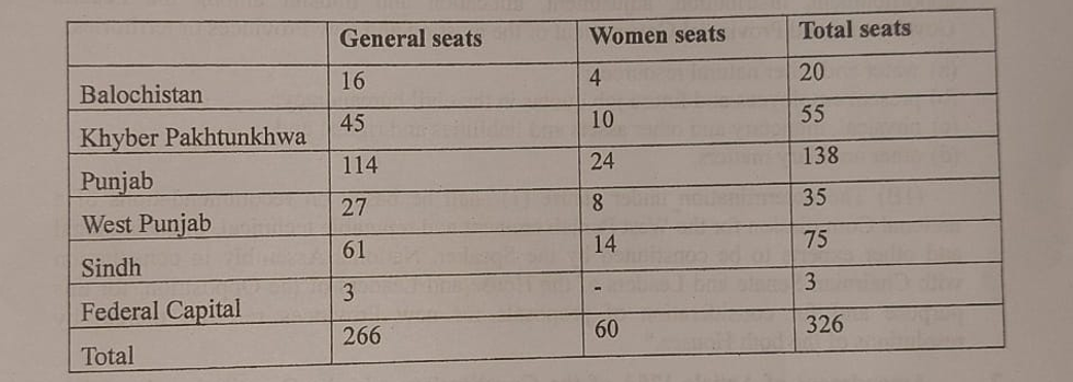 For the new West Punjab province, the bill assigns 27 general and 8 women’s seats. In total, the National Assembly would have 266 general and 60 women’s seats, making 326 seats overall.