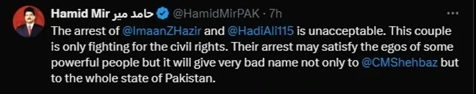 Veteran journalist Hamid Mir warned that the arrests "may satisfy the egos of some powerful people but it will give a very bad name not only to Prime Minister Shehbaz Sharif but to the whole state of Pakistan."