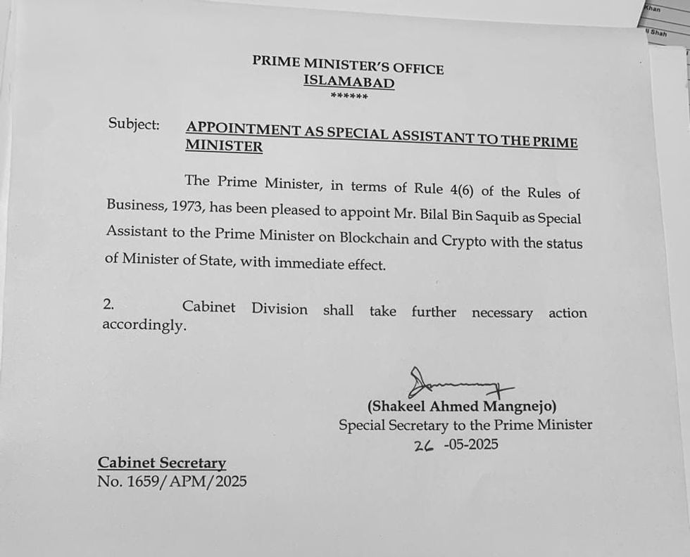 Bilal Bin Saqib has been appointed SAPM on Blockchain and Crypto with the status of Minister of State