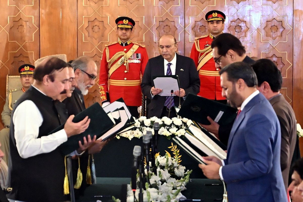 President Asif Ali Zardari administered the oath to the new cabinet members at a ceremony at the President House. However, three nominated ministers, Pir Imran Shah, Shazra Mansab, and Armaghan Subhani, were unable to attend and will take their oaths at a later time.