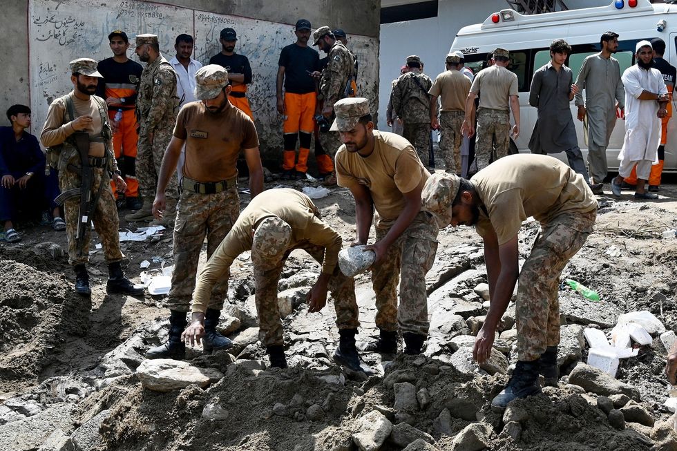 Rescue workers search for victims after floods hit Dalori Bala village in Gadoon, Khyber Pakhtunkhwa, Pakistan, August 19, 2025.