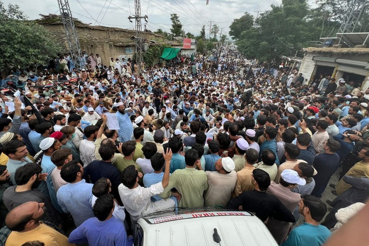 Residents of Bajaur stage a protest at Umari Chowk against the military campaign on Wednesday, July 30, 2025.