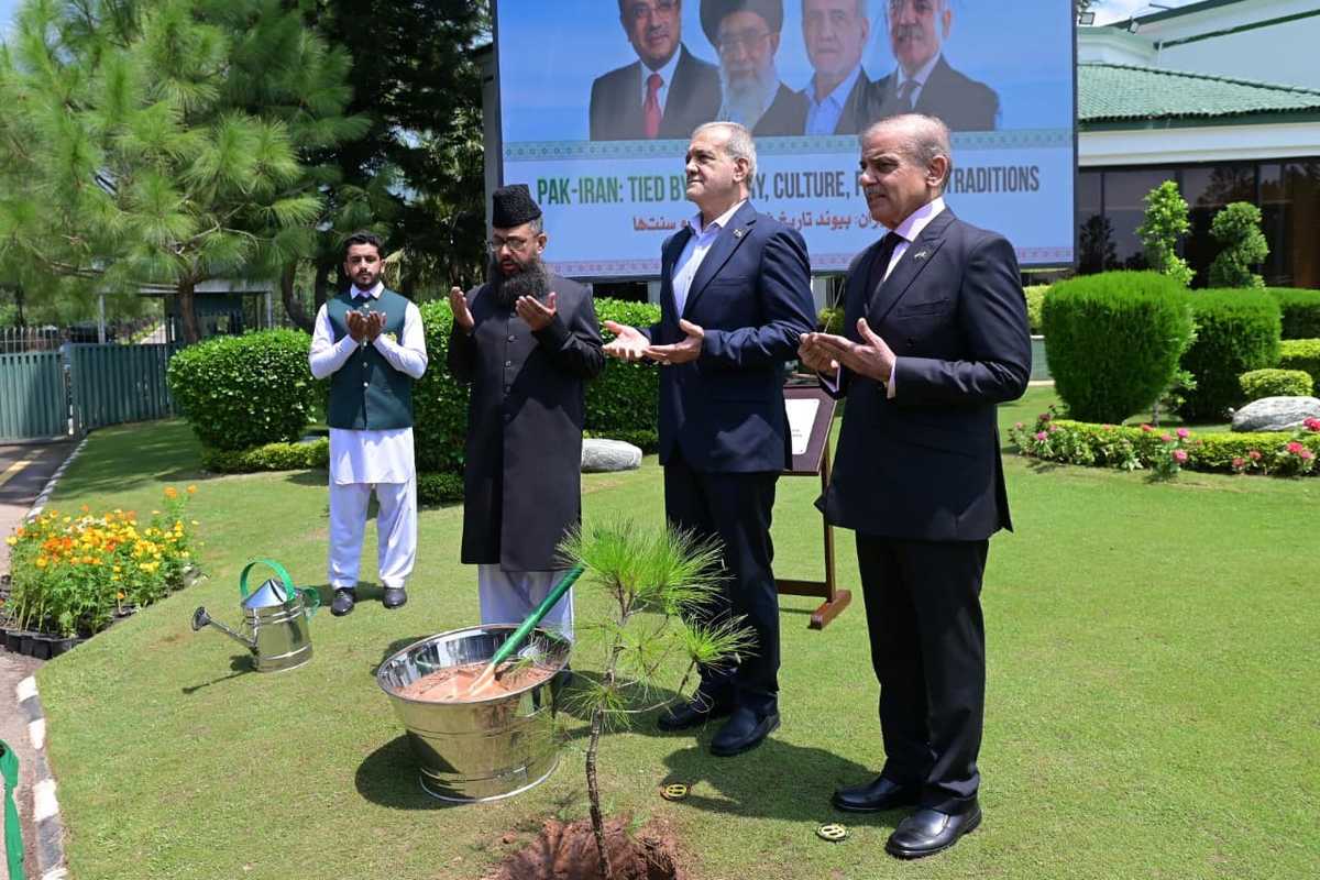 The Iranian president also planted a memorial sapling in the Prime Minister's House grounds, with special prayers offered for the progress and prosperity of the Islamic world.